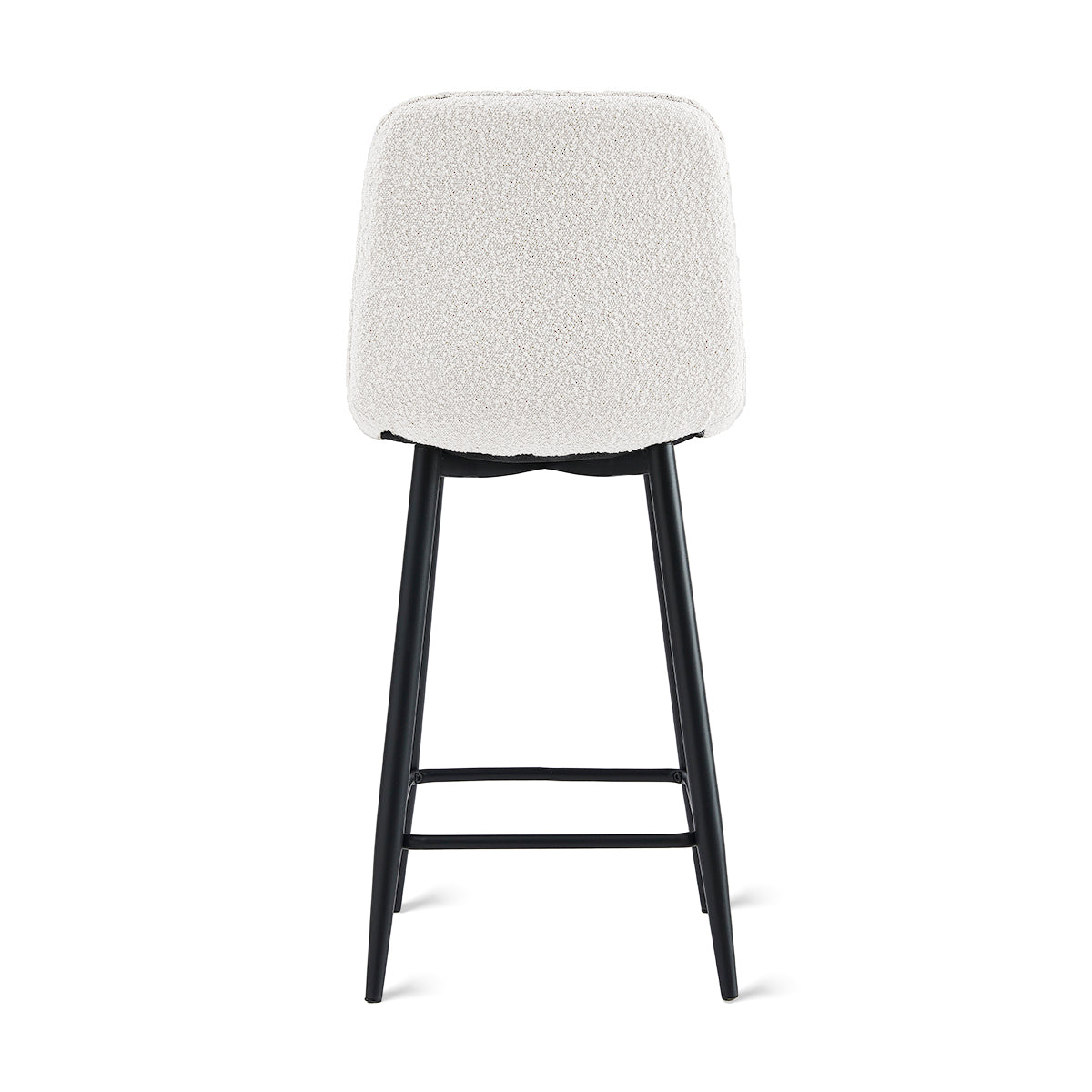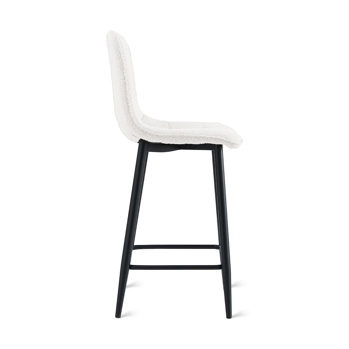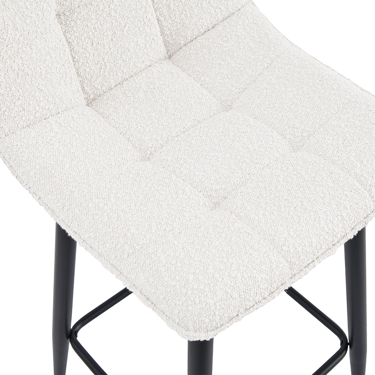 Yerevan is een subtiele barkruk in ivoorkleur bouclé met een stevig metalen onderstel. Voor gezinnen en liefhebbers van dagelijkse luxe — hij combineert praktisch gemak met strakke, tijdloze stijl.