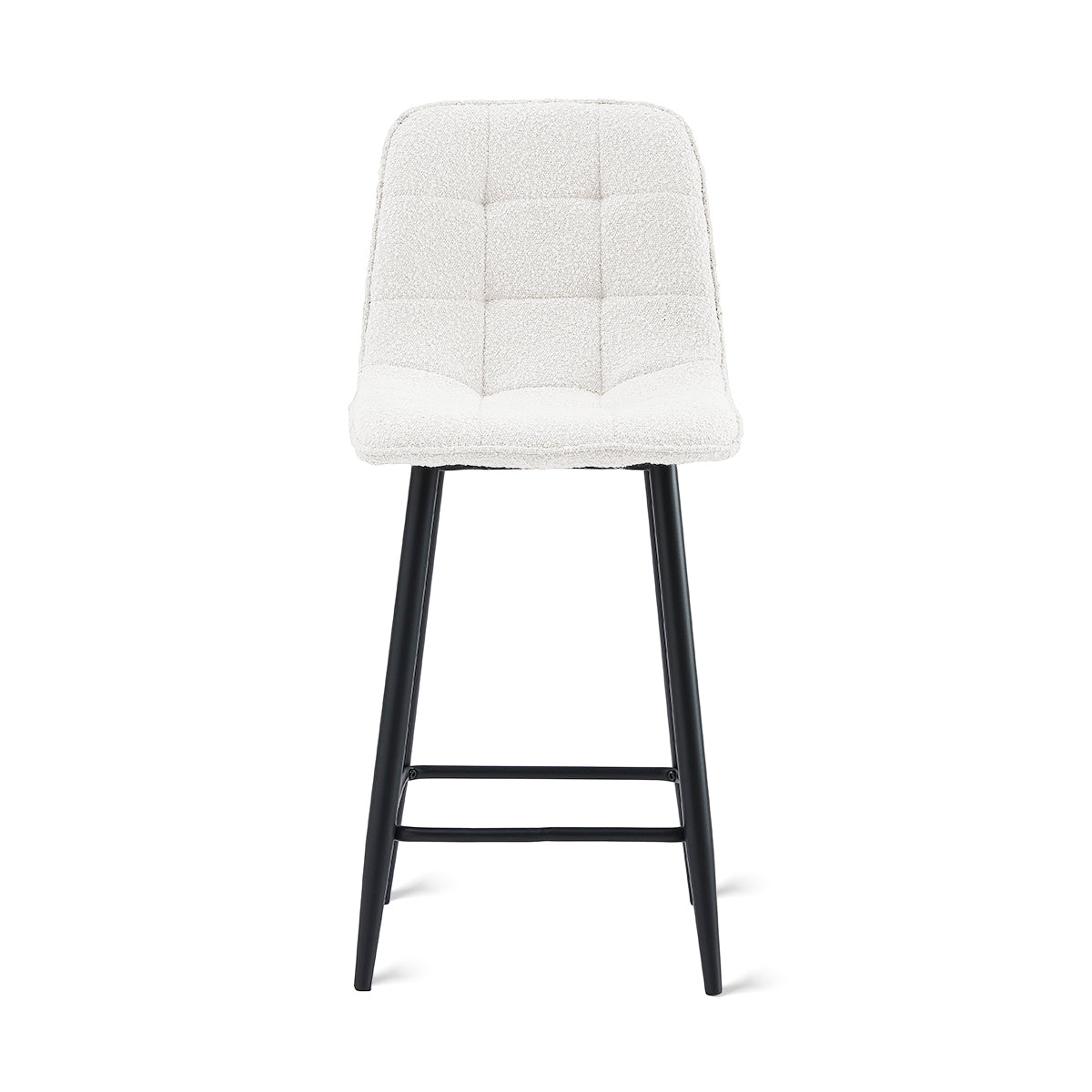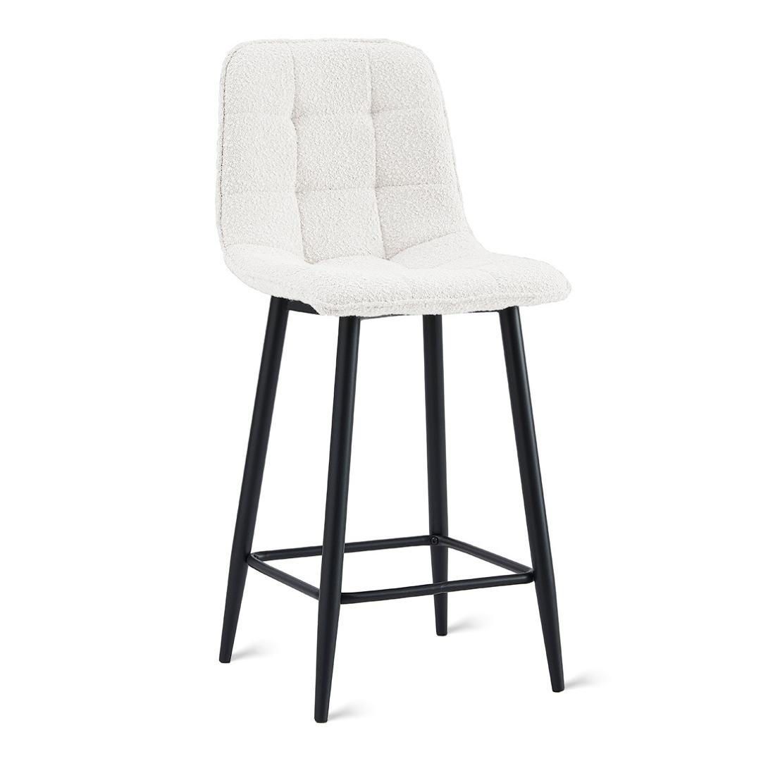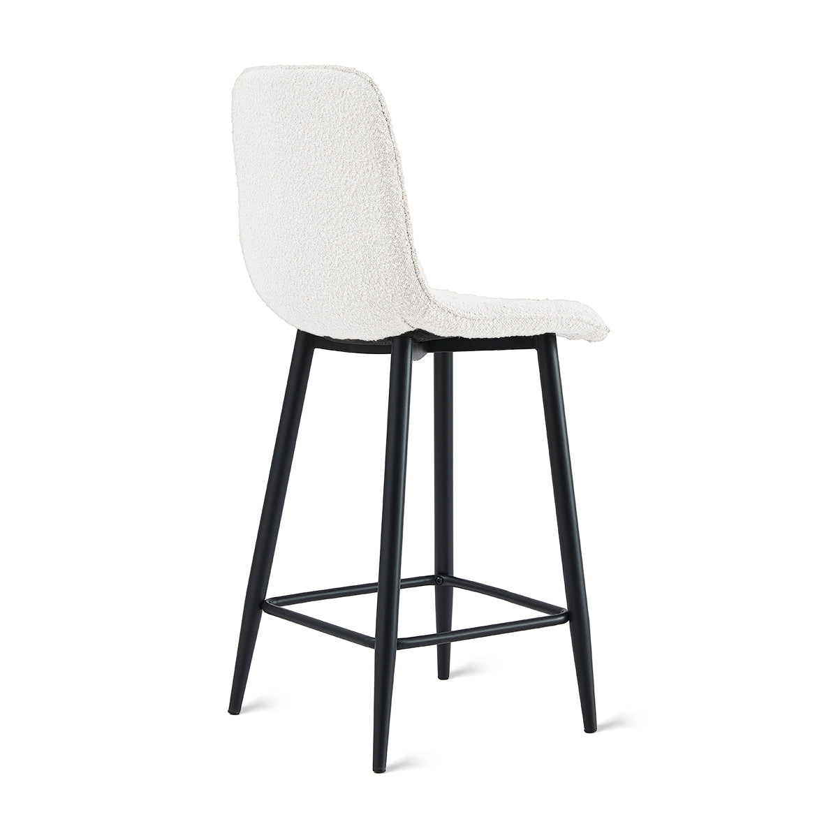 Yerevan is een subtiele barkruk in ivoorkleur bouclé met een stevig metalen onderstel. Voor gezinnen en liefhebbers van dagelijkse luxe — hij combineert praktisch gemak met strakke, tijdloze stijl.