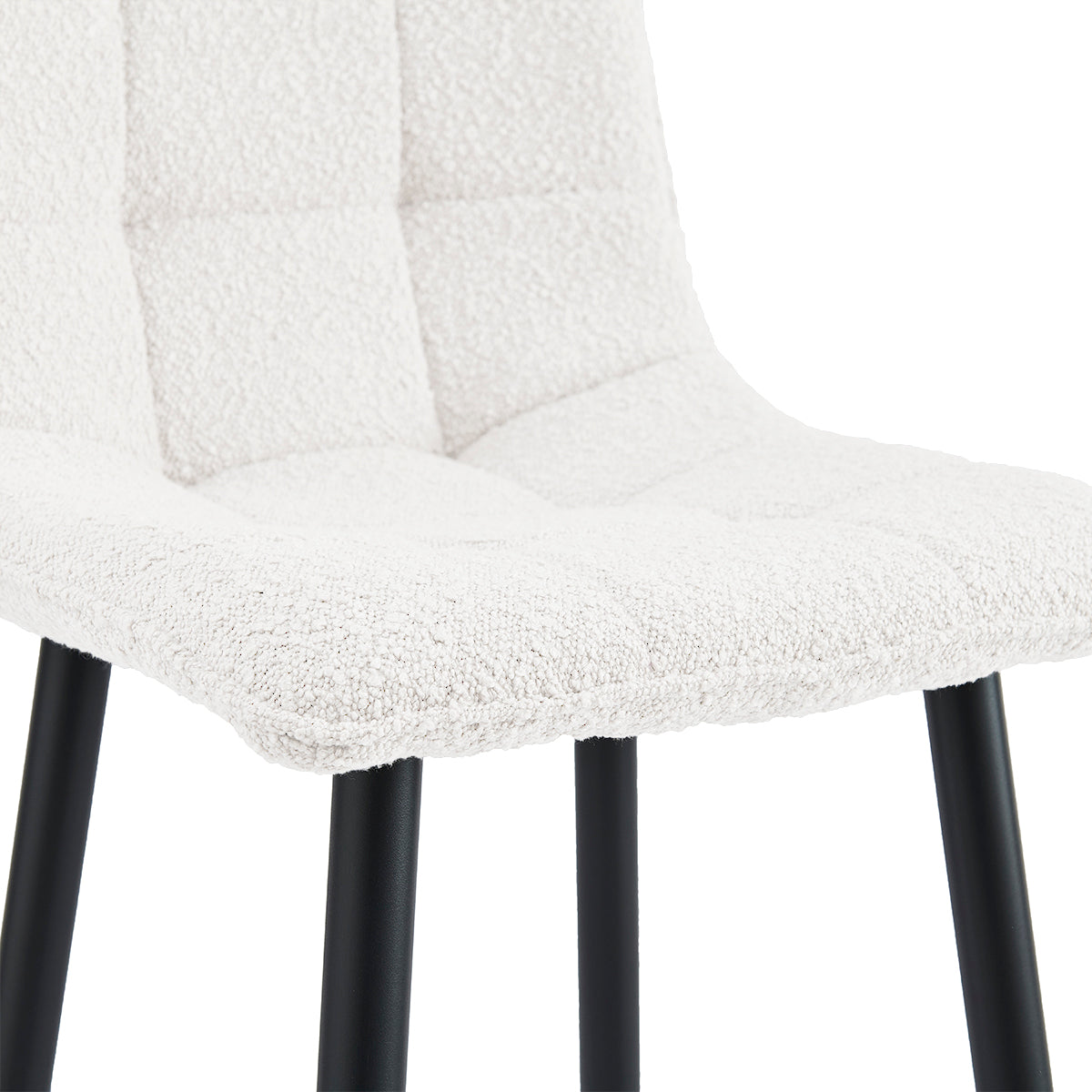 - Materiaal en afwerking: ivoorkleur bouclé bekleding op een robuust metalen frame – duurzaam en makkelijk te combineren.