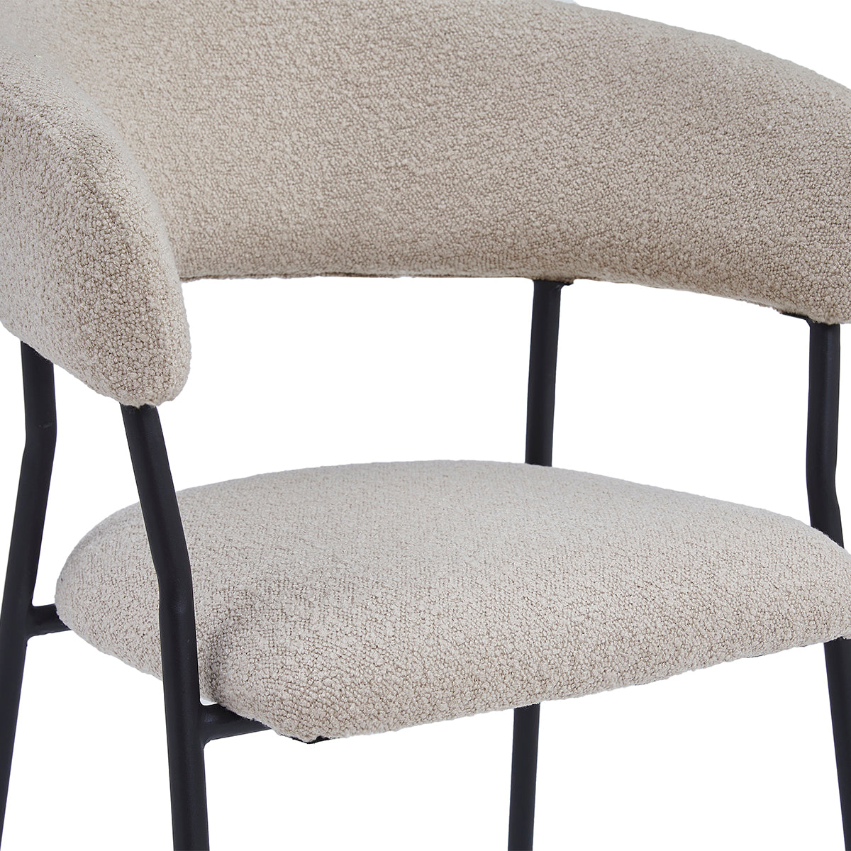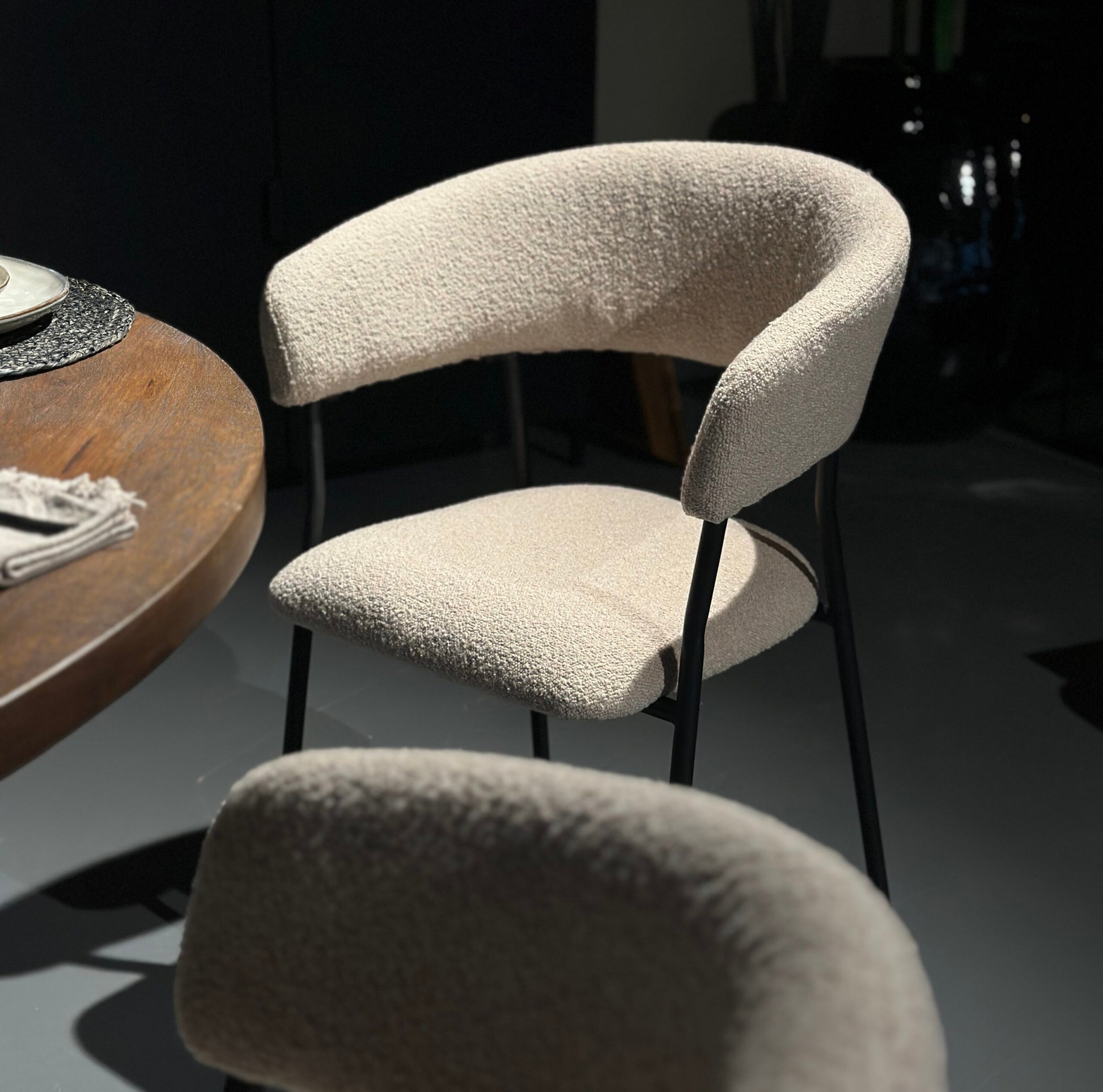Ava, de bouclé eetkamerstoel vol comfort en eenvoud. Het gestroomlijnde ontwerp en zachte bekleding bieden uitnodigende zitervaring. Neutrale tinten passen in elke ruimte, duurzame materialen zorgen voor praktisch gebruik. Tijdloze elegantie voor ontspannen maaltijden. Zithoogte: 47 cm. Materiaal: Bouclé. Kleur: Taupe.