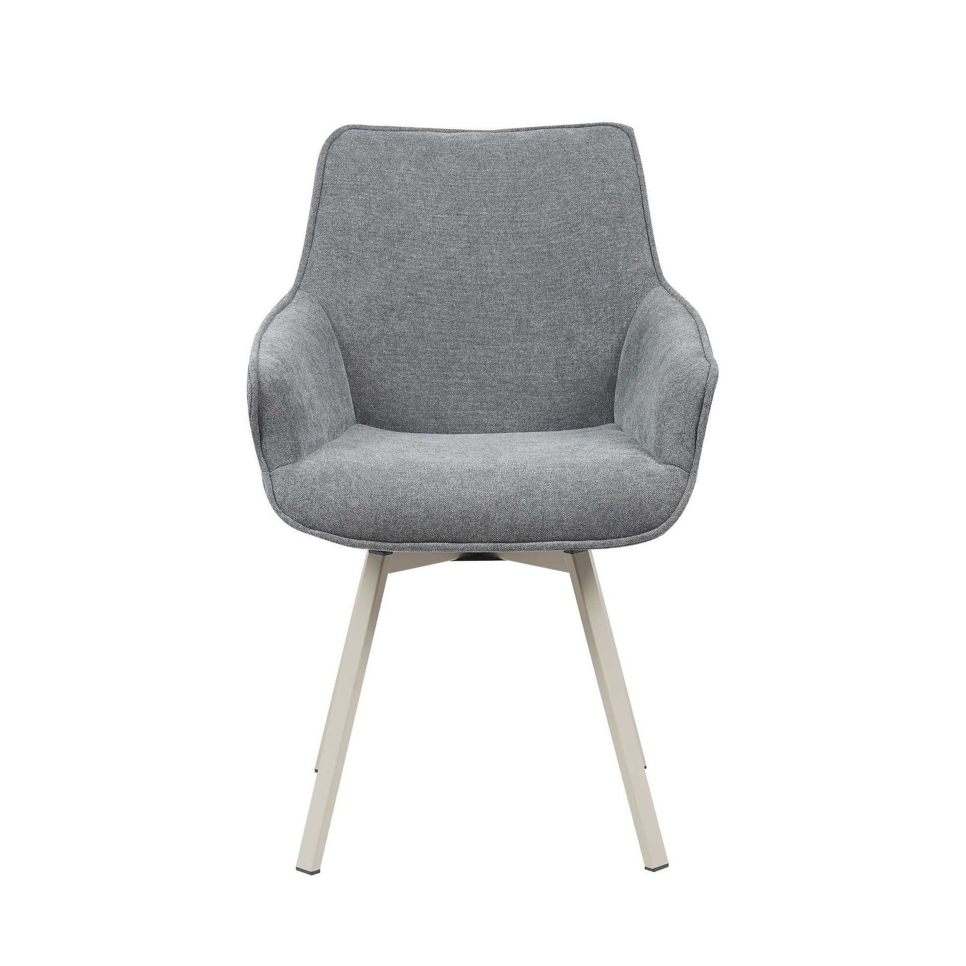 De draaibare eetkamerstoel Mees combineert comfort met een eigentijdse uitstraling, perfect voor moderne eetkamers. Gemaakt van antraciet stof met een licht metalen onderstel en nu ook beschikbaar in Taupe — geleverd per twee.