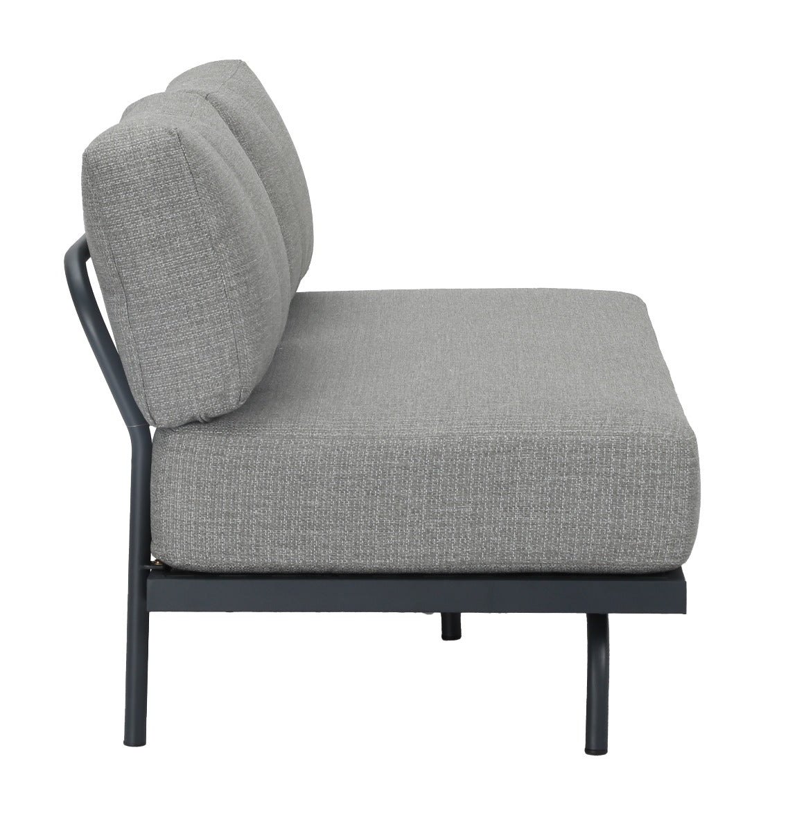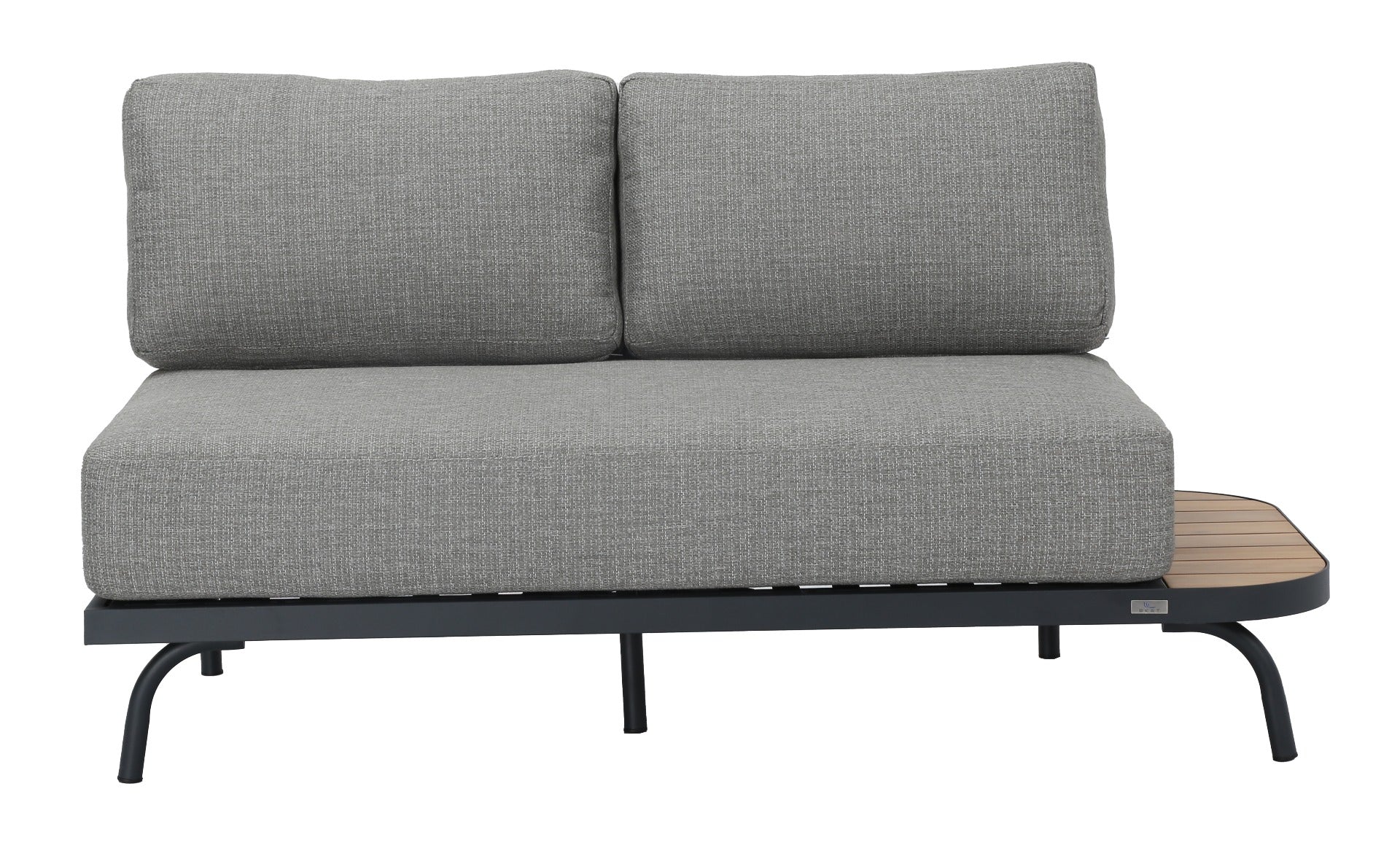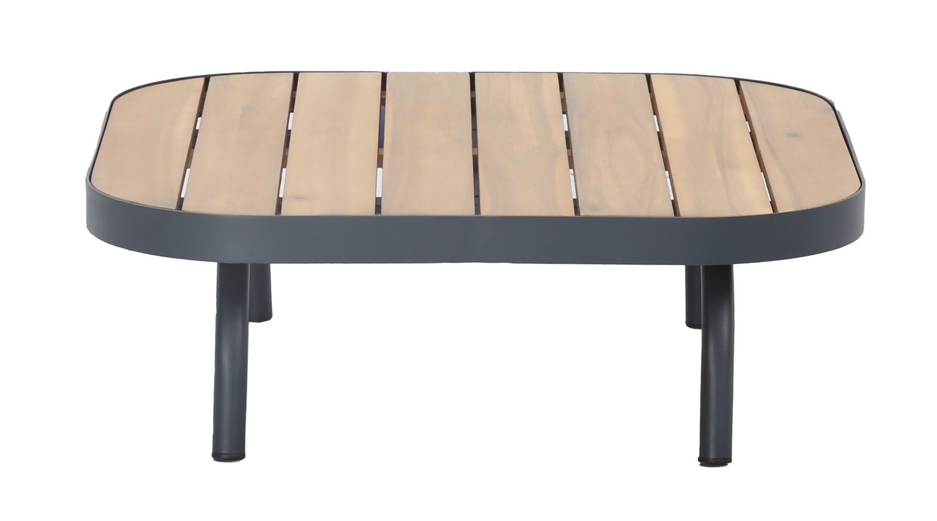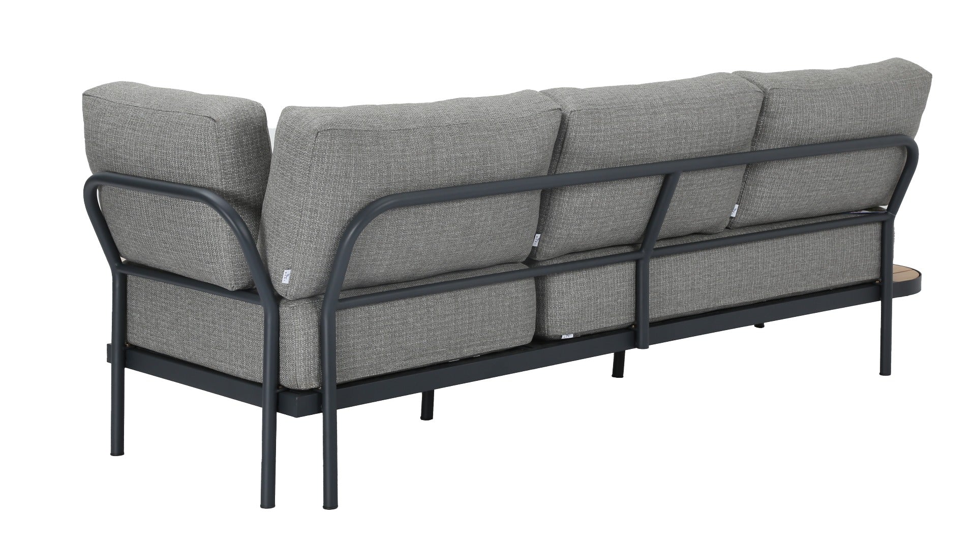 Porto lounge hoekset: robuust gepoedercoat stalen frame in antraciet (RAL 7016) met licht teak-look acaciahout. Inclusief comfortabele Fontelina C/168 zit- en rugkussens. Strak design, weerbestendig en duurzaam — perfect voor ontspannen, stijlvolle buitenruimtes.