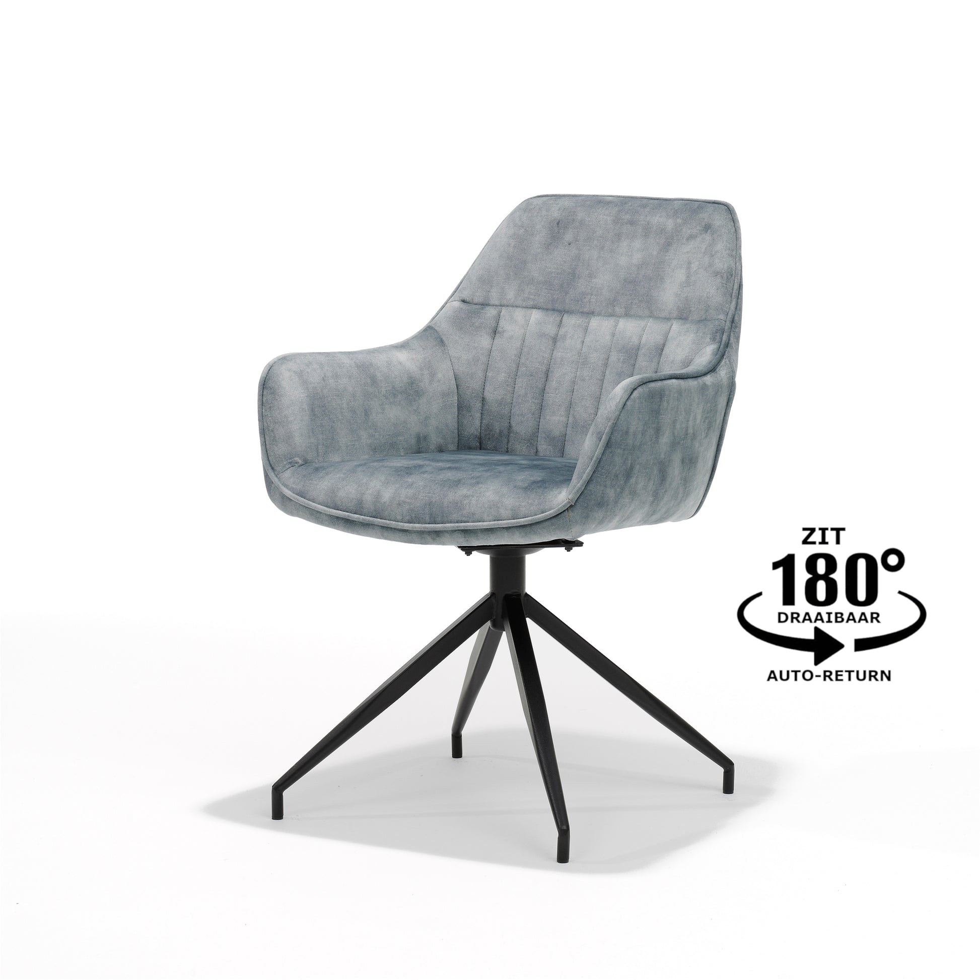 Deze stoel biedt concrete voordelen zoals comfortabel zitten over langere periodes en een gebruiksvriendelijke ervaring dankzij het automatische terugkeermechanisme. De combinatie van een zachte Velours-stof, kleurvast polyester en een gebalanceerde zithoek zorgt ervoor dat hij zowel praktisch als stijlvol is in diverse ruimtes. Doordat de stoel draaibaar is en automatisch terugkeert, blijft de omgeving overzichtelijk en klaar voor dagelijkse gesprekken en activiteiten.