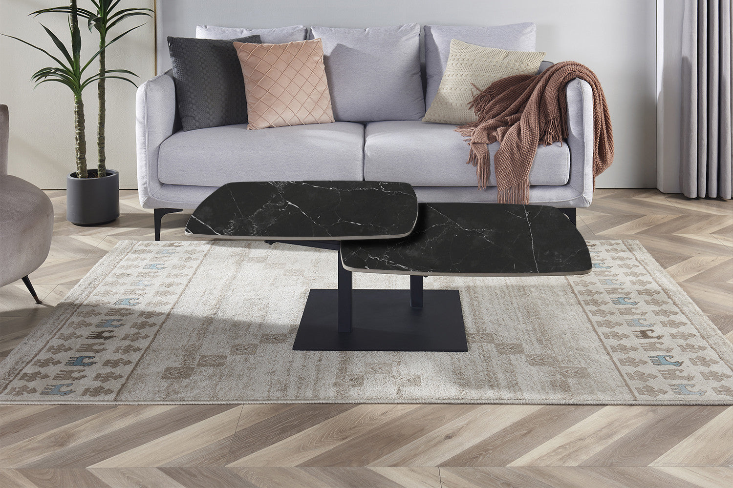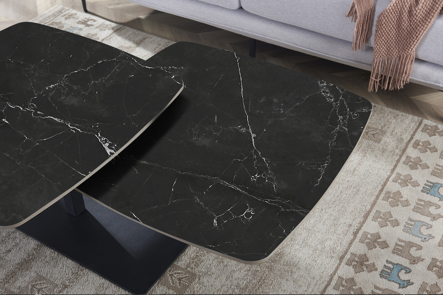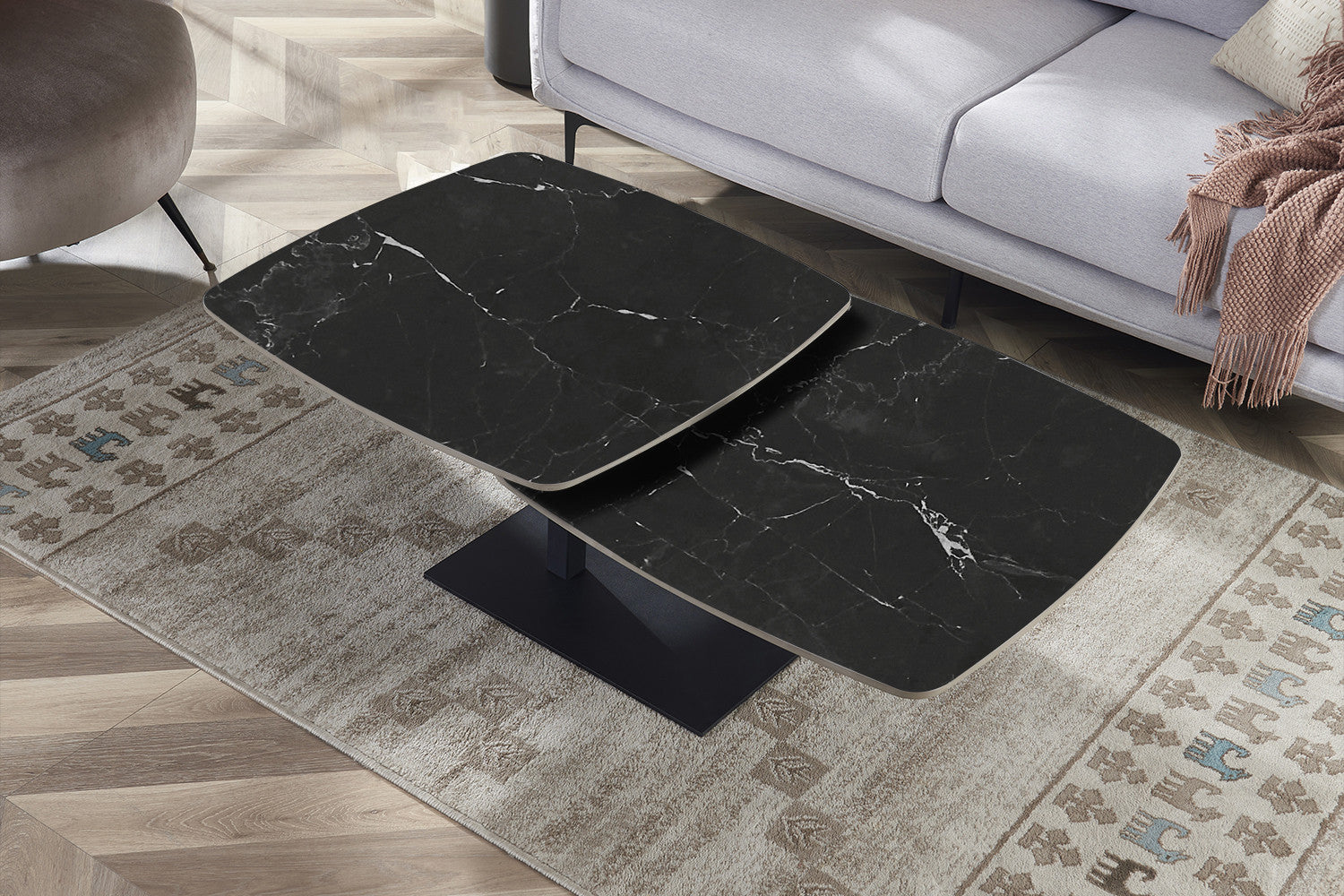 Salontafel 'Sendai' Rond Draaibaar Steen Zwart