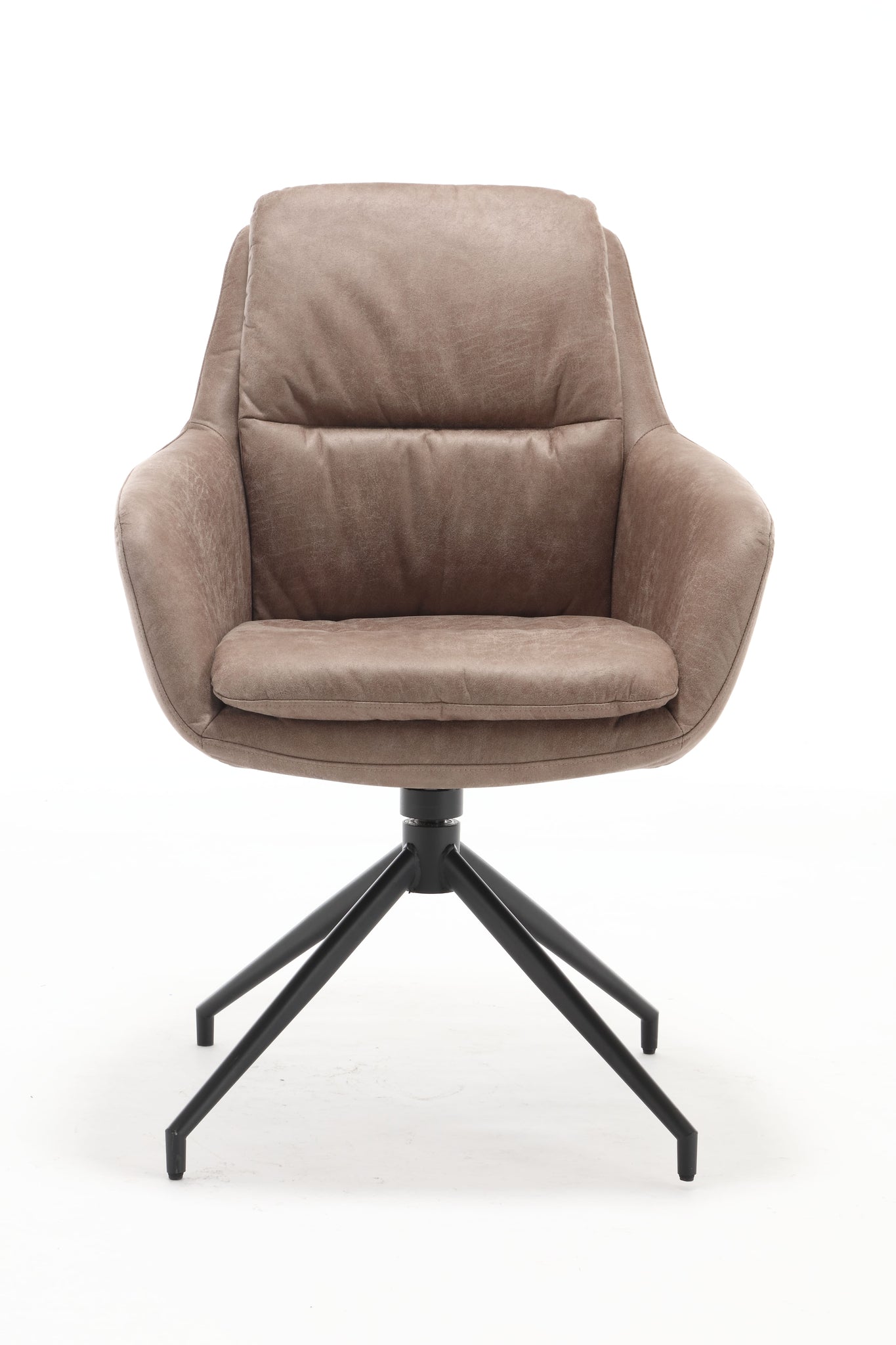The Dave Chair in Elephant offers a stylish combination of comfort, class, and smart functionality. Upholstered in Manila Leather Look fabric, featuring a modern silhouette, practical swivel mechanism, and a durable black powder-coated metal base. Perfect for any interior style.