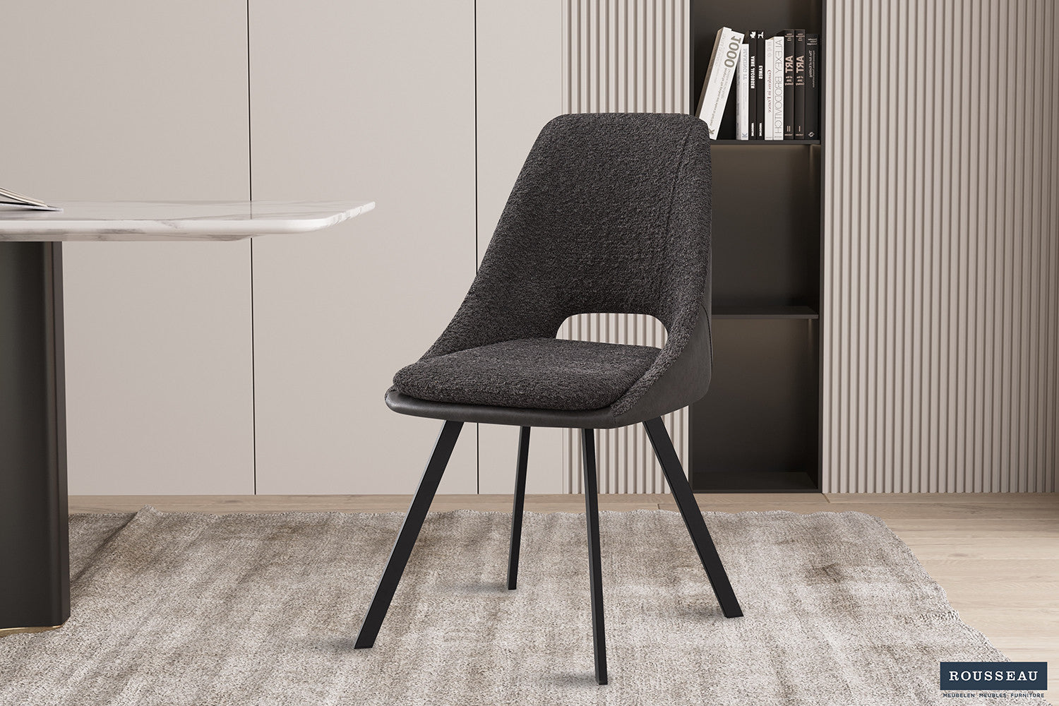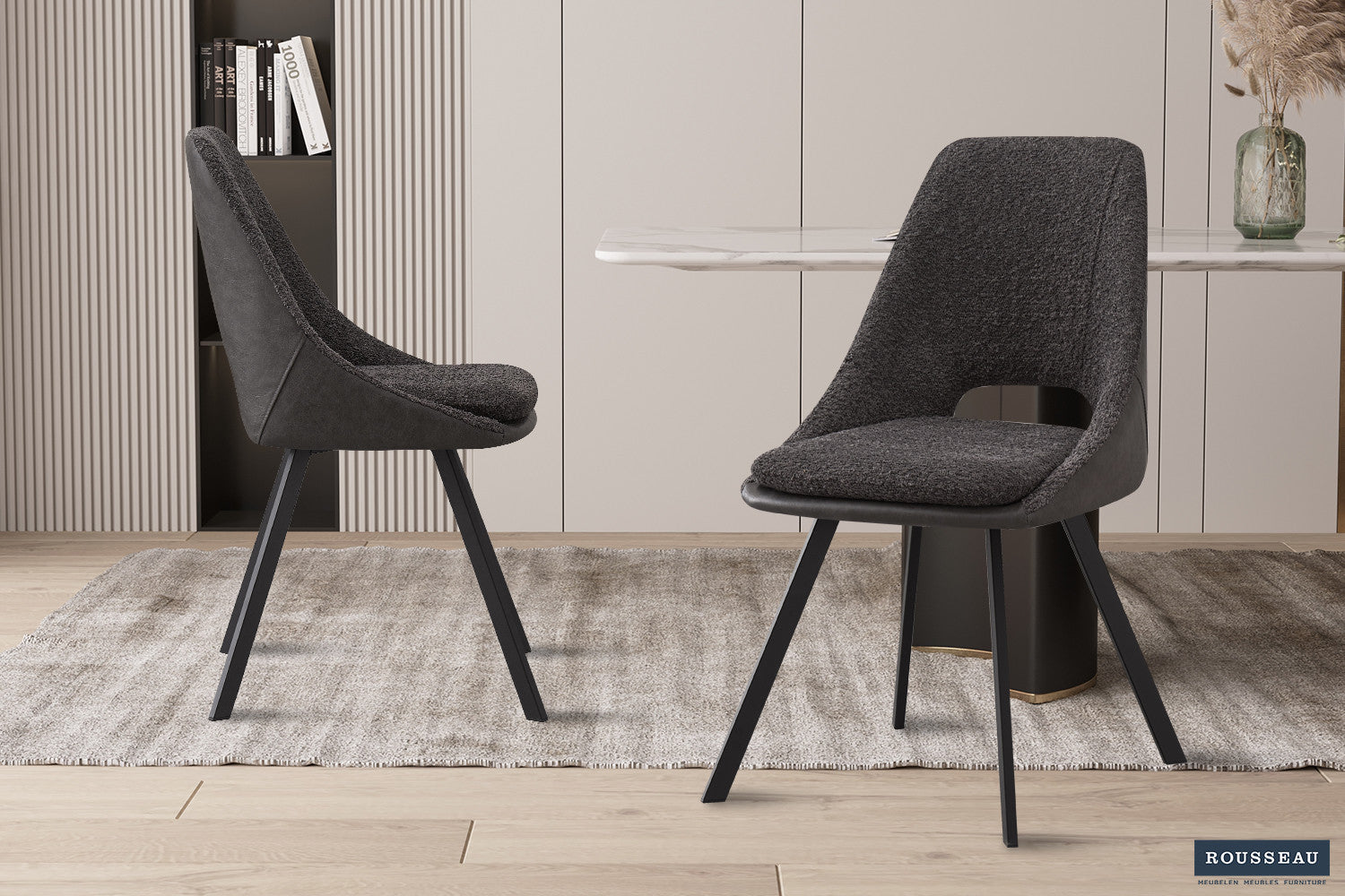 Stoel 'Filou' Bouclé Grijs Rug PU Lichtgrijs