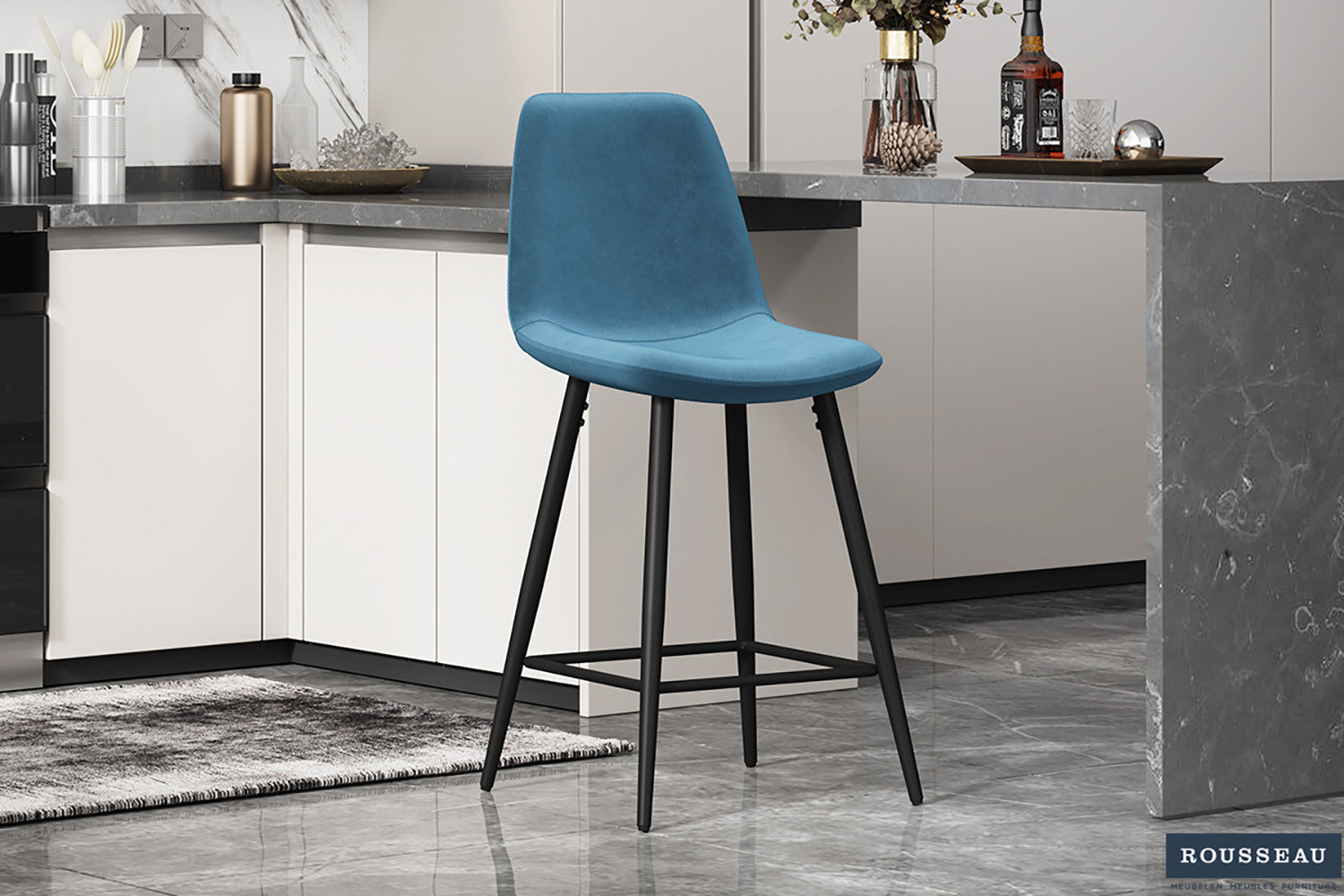 Tellerstoel 'Boy' Fluweel Lichtblauw